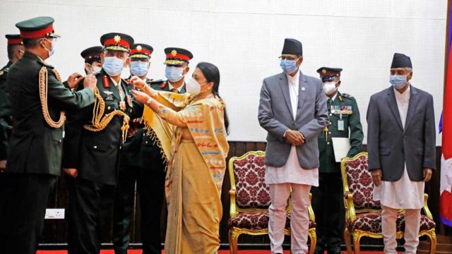 KATHMANDU: President Bidya Devi Bhandari has conferred the insignia of the Chief of Army Staff