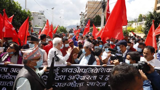 KATHMANDU: Fringe political parties have demonstrated in Kathmandu against the US assistance Millennium Challenge Corporation