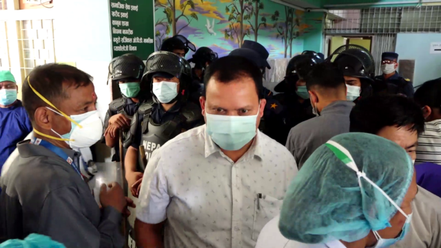 KATHMANDU: Four persons were injured in a clash between security personnel and health workers at