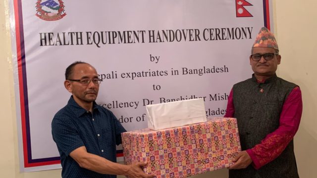 KATHMANDU: Nepali expatriates in Bangladesh handed over health equipment and other materials to the Ambassador