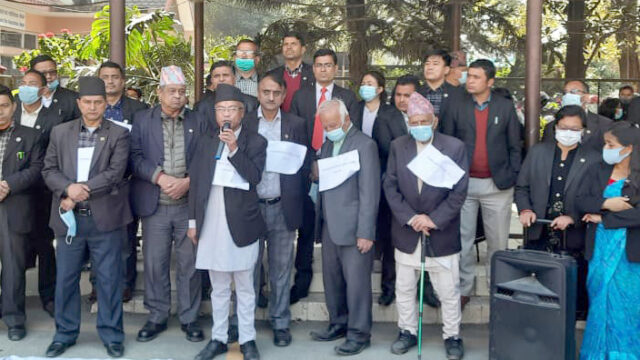 KATHMANDU: Lawyers and Nepal Bar Association (NBA) officials continued their protest against Chief Justice Cholendra