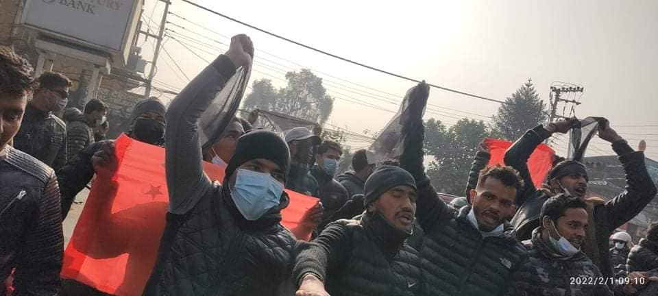 KATHMANDU: Demanding the announcement of the date of local elections, students affiliated with CPN-UML demonstrated in front of the ministers’ quarters in Pulchowk on Tuesday morning.