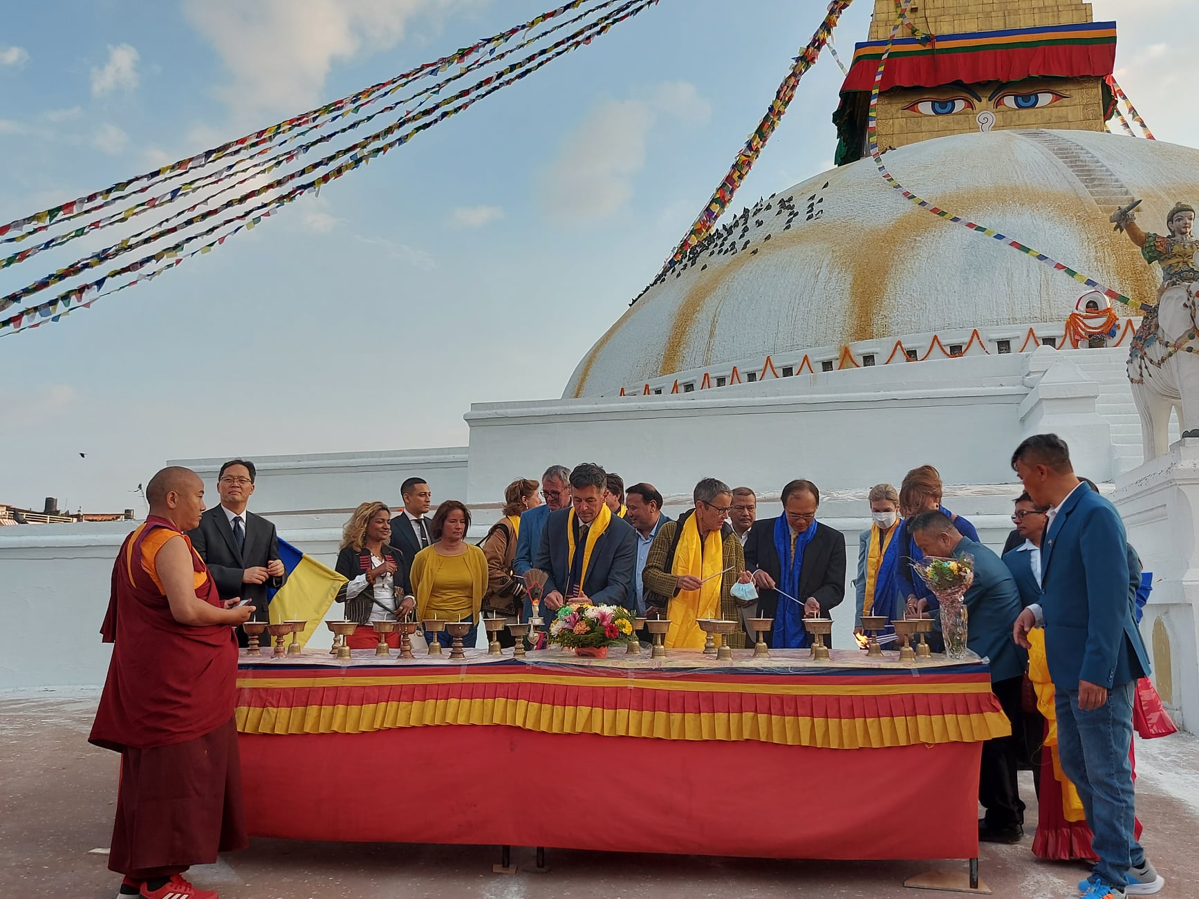Ambassadors from the United States, United Kingdom, Australia, Germany, France, Switzerland and Finland, among others, reached Boudhanath yesterday evening to pray for peace in Ukraine. Russia and Ukraine have been at war for the past nine days.