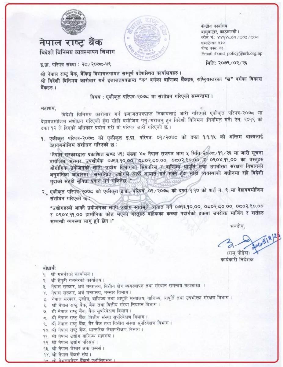 The statement also urged Banks and Financial Institutions (BFIs) to facilitate exchange of foreign currency for import of betel nut, pepper, dates and chickpeas as raw materials for industrial use.