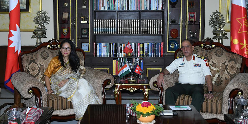 KATHMANDU: Charge d’affaires at the Indian Embassy in Kathmandu Namgya C Khampa paid a courtesy call on Chief of Army Staff General Prabhu Ram Sharma on Thursday.