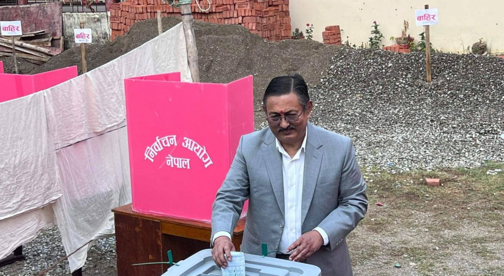 Minister Khand has cast his vote at the Jyotinagar polling station of Tilotta in Rupandehi.