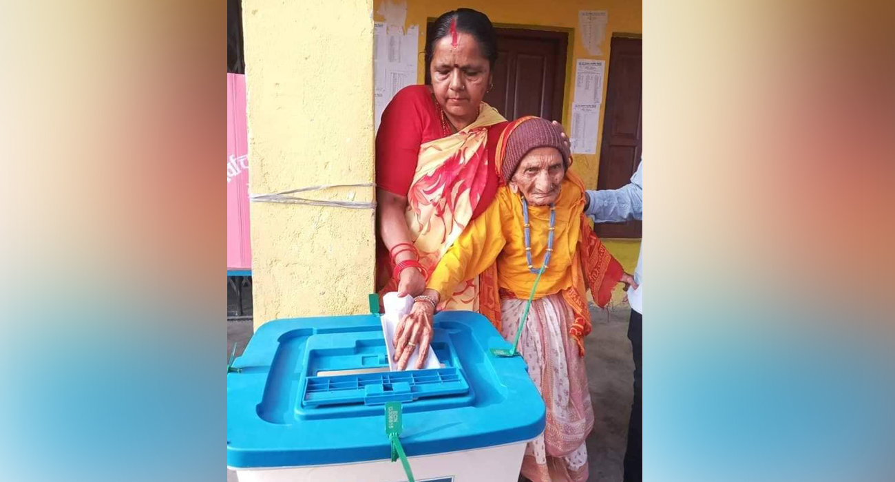 Meanwhile, another woman of the same age in Tanahu district also cast her ballot today becoming one of the eldest voters in the country’s ongoing election. Gopimaya Pokharel of Barbhanjyang in Bhanu municipality exercised her franchise today morning.