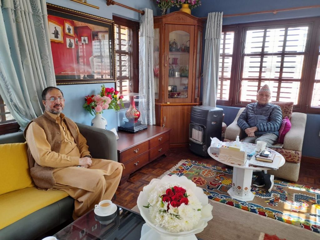 KATHMANDU: The CPN-UML Chairman and former Prime Minister KP Sharma Oli met Ambassador of Pakistan to Nepal Syed Haider Shah at his residence in Balkot on Sunday.