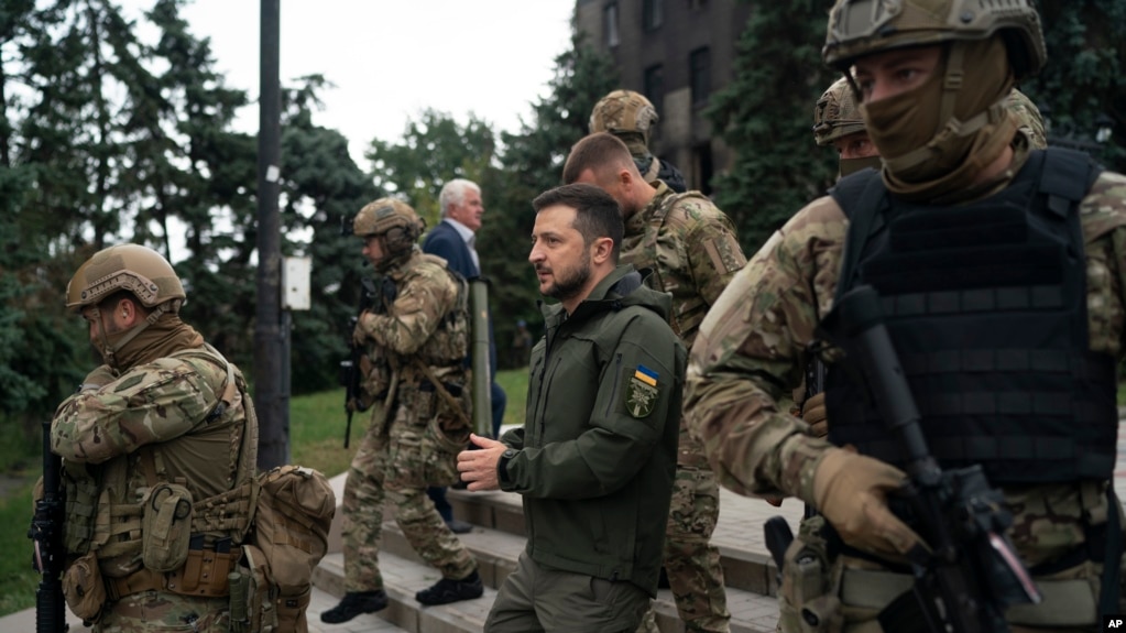 KYIV: Ukrainian President Volodymyr Zelenskyy visited the city of Izium on Wednesday where he met with soldiers and thanked them for their efforts in retaking the area from Russian forces last week.