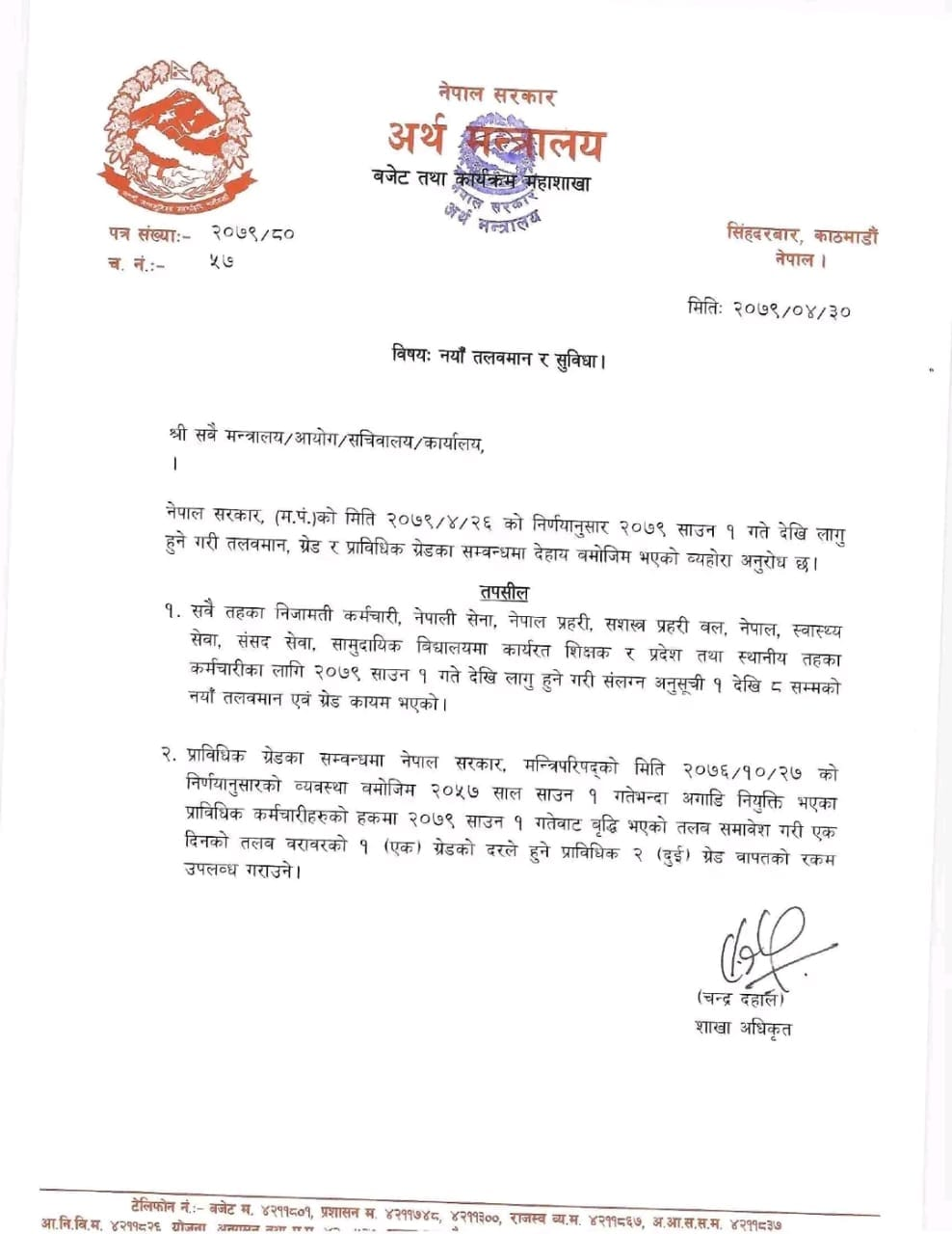 KATHMANDU: The Ministry of Finance has made public the new salary scale of civil servants.