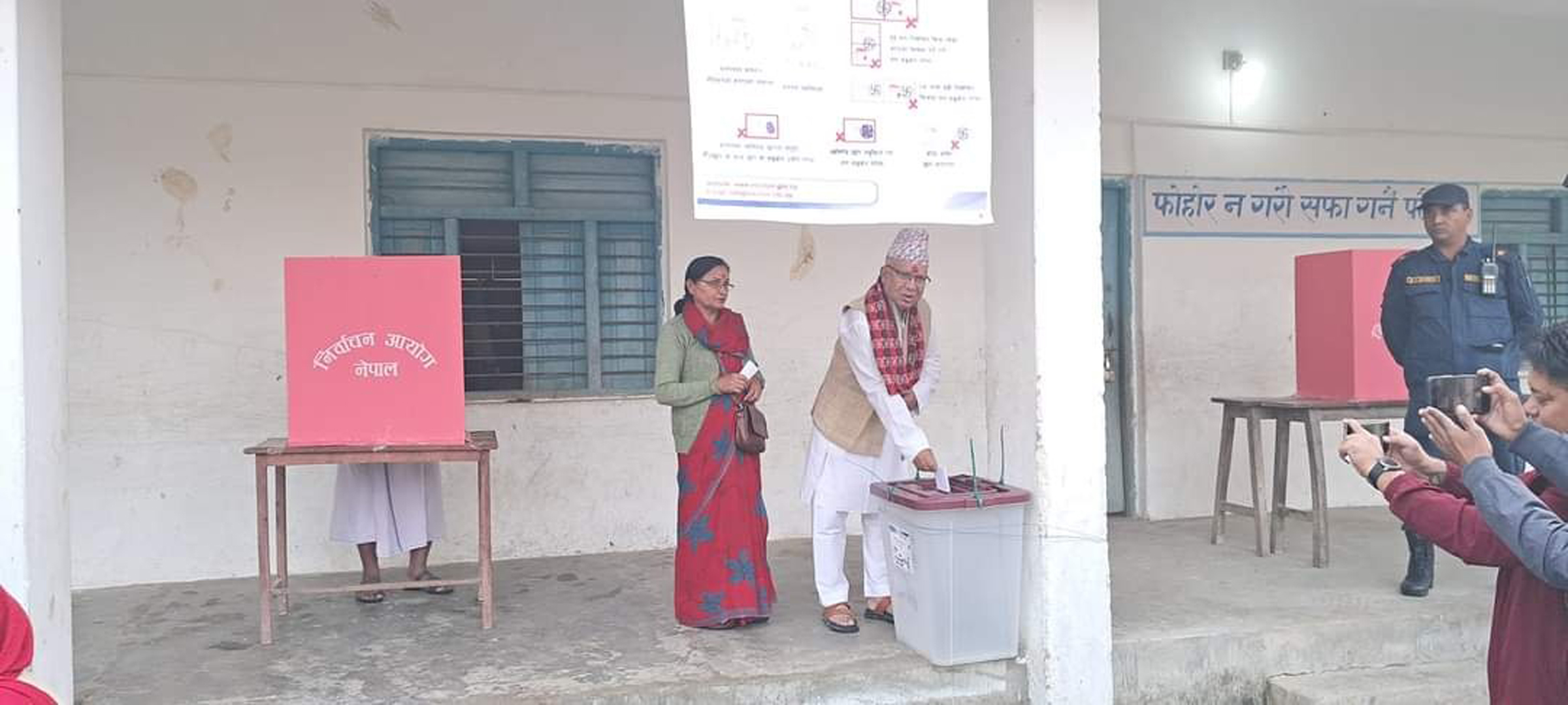 RAUTAHAT: Chairman of Unified Socialist Party Madhav Kumar Nepal cast his vote at Sri Ramjanaki Kanya Adarsha School in Gaur of Rautahat on Sunday.
