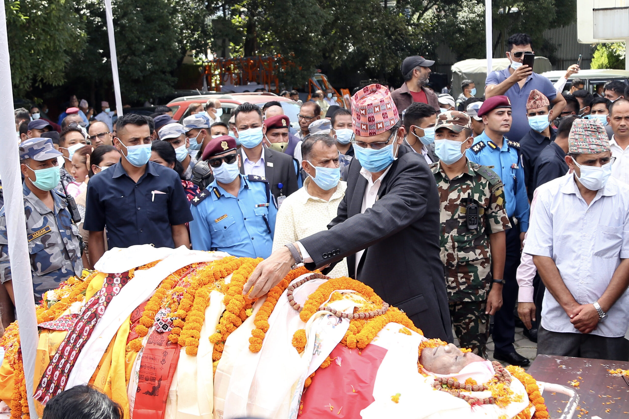 KATHMANDU: Speaker Agni Prasad Sapkota has extended his tributes to late Nepali Congress leader Pradeep Giri. He offered tributes and garlands to mortal remains of Giri at NC party office at Sanepa in Kathmandu on Sunday.