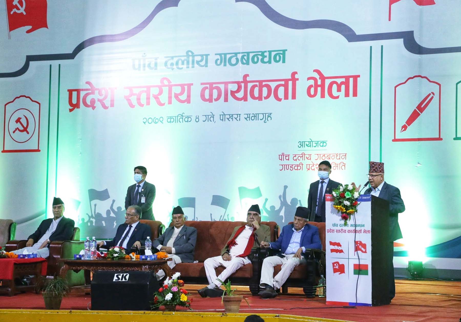 Inaugurating the provincial level assembly of the party cadres organized by the five-party coalition Gandaki Province Committee Pokhara today, he said, “The coalition government has been successful to ensure justice to the people, establish equality and take the country towards the path of development.”