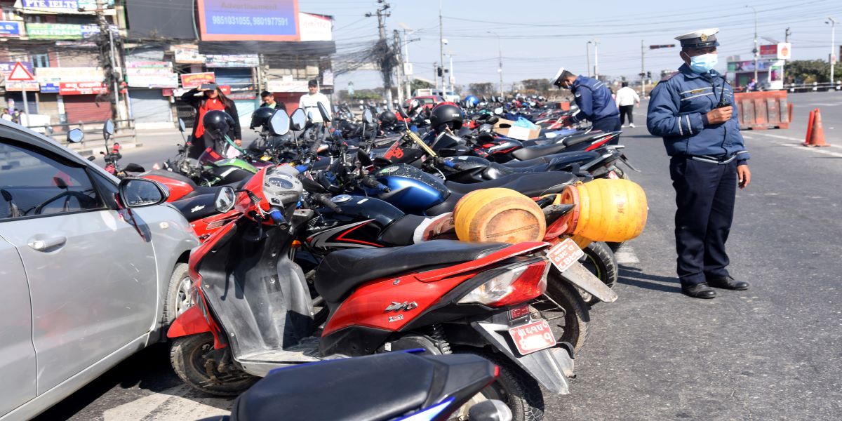 Rajendra Prasad Bhatta, the spokesperson of traffic police, said that 1,349 motorcycles and 87 four-wheeler vehicles were taken under control yesterday.
