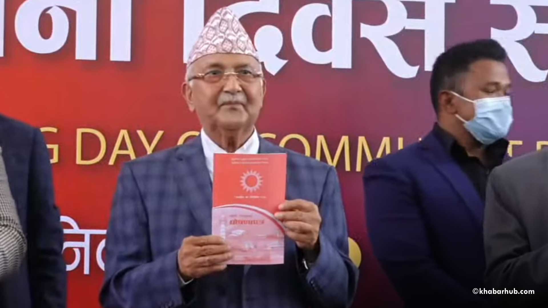 UML Chairman KP Oli unveiled the election manifesto at the party’s establishment day program held at the Tulsilal Memorial Foundation building in Chayasal, Lalitpur, on Friday.