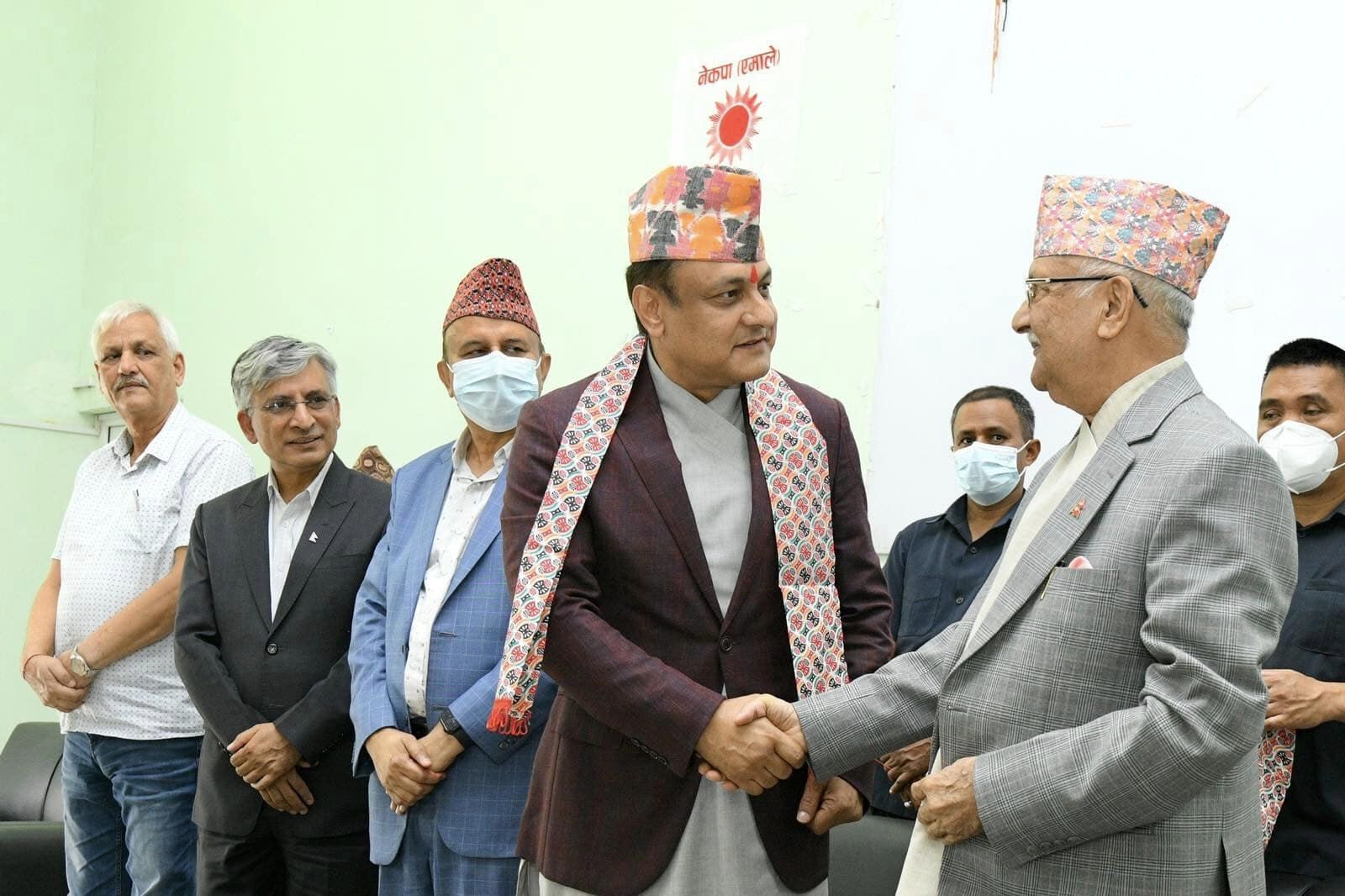 UML Chairman Oli welcomed former Inspector General of Police, Sarbendra Khanal, and others to the party amid a program on Thursday.