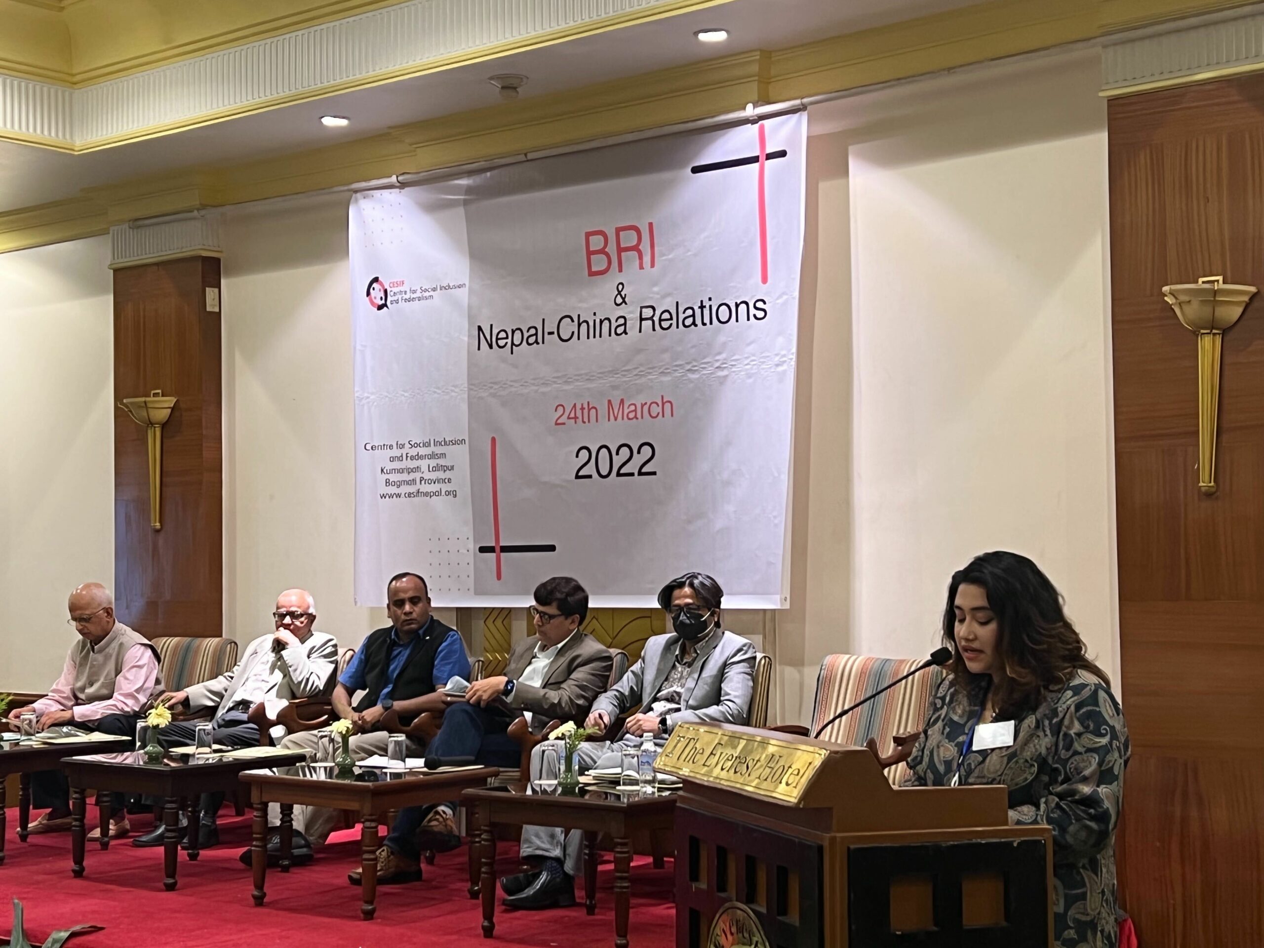 The themes were BRI and Geopolitics: Risks and Opportunities, Nepal-China Cross-border Relations, and Nepal-China Trade, Transit, and Transport. Ajaya Bhadra Khanal, Arpan Gelal, and Shraddha Ghimire presented their research findings on the topics respectively.
