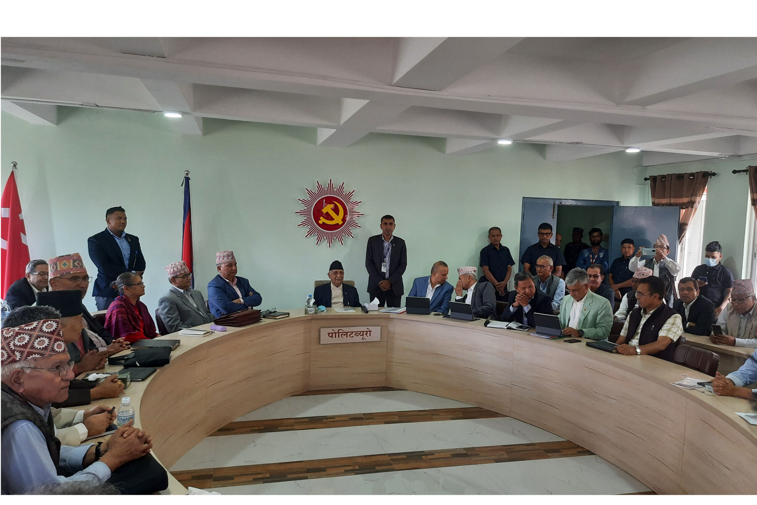 UML Chairman KP Sharma Oli presented a summary of his political report at the Politburo meeting held at the party office in Chyasal, Lalitpur, on Thursday (today).