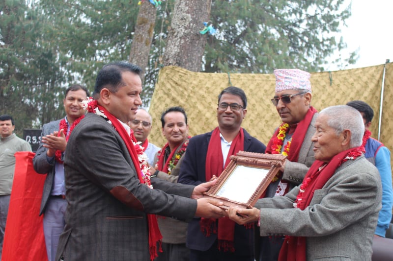 KATHMANDU: Press Council Nepal Chairman Bal Krishna Basnet has been honored at Charikot, in Dolakha, on Tuesday.