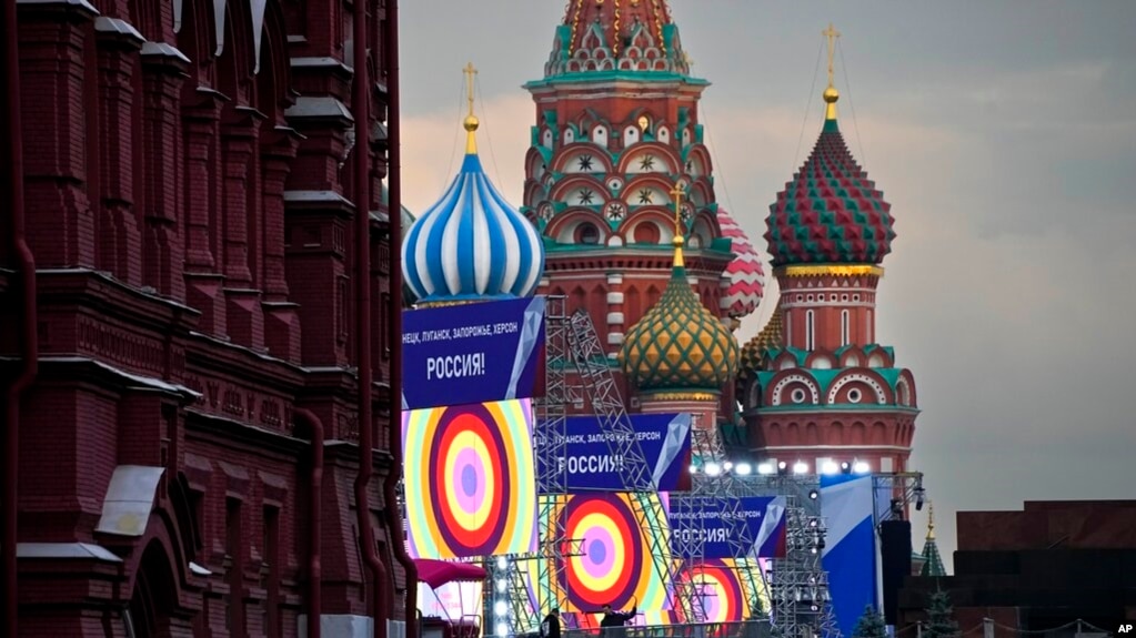 Kremlin spokesperson Dmitry Peskov told reporters Friday’s ceremony will include Putin, who is to make a major speech, and the Russian-appointed heads of the regions, where the Russian orchestrated referendums ended earlier this week.