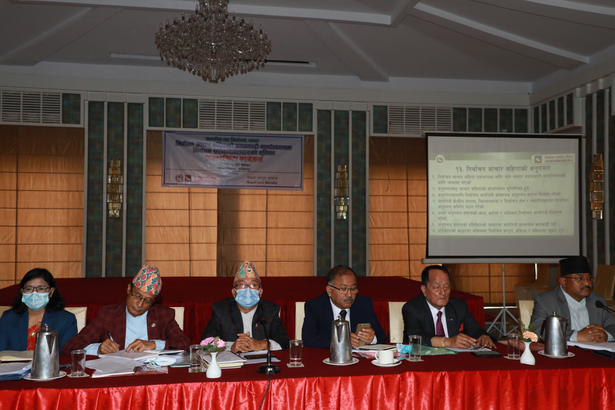 Leaders of various political parties, including Jeevan Ram Shrestha, Madhav Poudel, Khem Prasad Lohani, Baburam Dahal, Laxman Lal Karna, and Khim Lal Devkota, among others suggested to the Election Commission to work independently and be strict in enforcing the election code of conduct for enhancing the credibility of the elections.