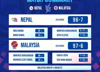 In reply, Nepal’s batting too did not go well to start with. At the end of eight overs, Nepal had already lost three wickets with only 22 runs on the board.