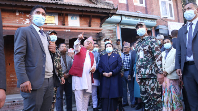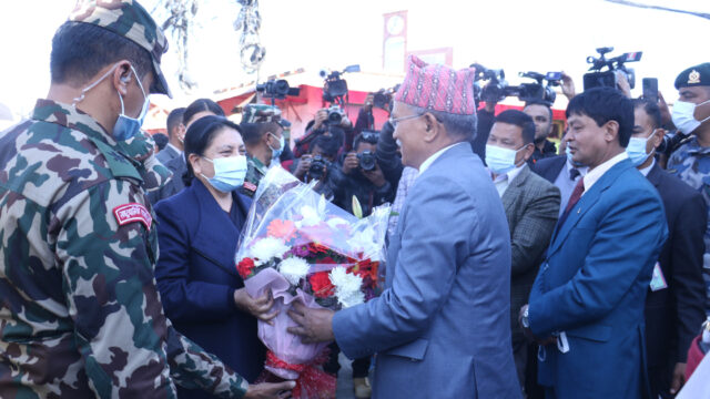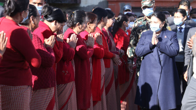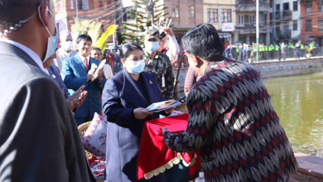 The President clad in the Newari cultural attire was welcomed by Lalitpur Metropolitan City Mayor Chiri Babu Maharjan.