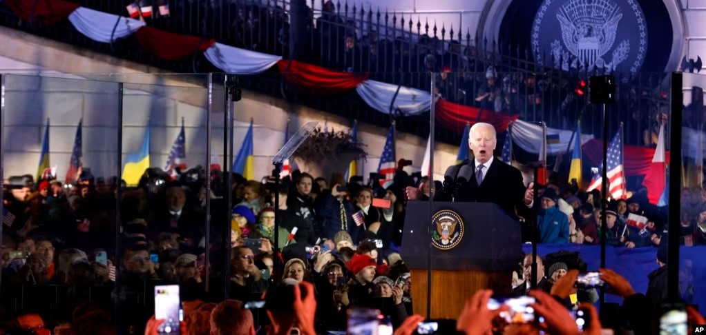“One year ago, the world was bracing for the fall of Kyiv,” Biden told the over ten thousand Poles gathered outdoors at Poland’s Royal Castle complex. “Well, I’ve just come from a visit to Kyiv, and I can report Kyiv stands strong. It stands tall. And most important, it stands free.”