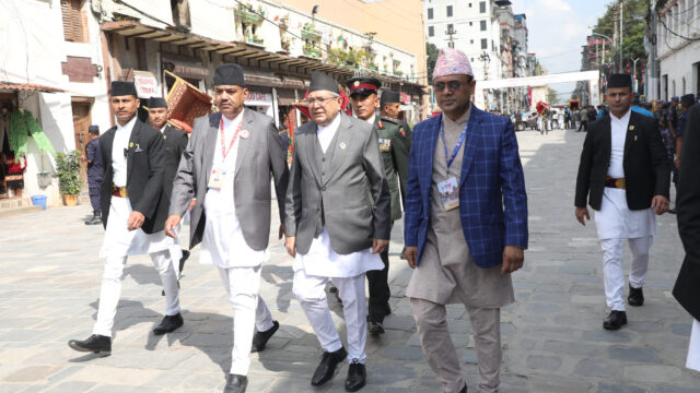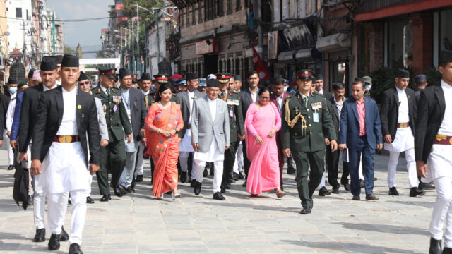 KATHMANDU: President Ram Chandra Paudel, and other dignitaries, walked from New Road to Basantapur to witness the Indra Jatra festival today (Thursday).