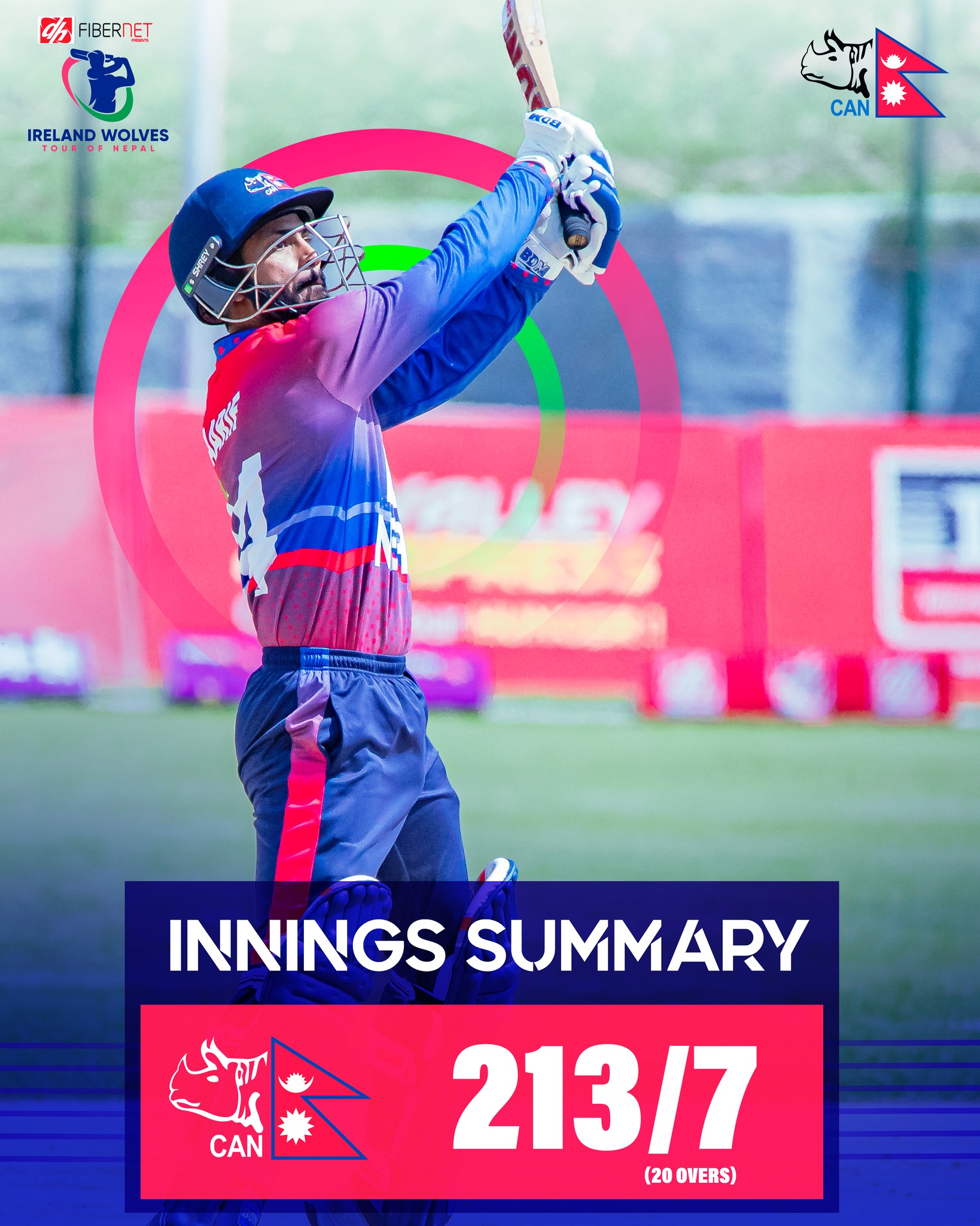 Having lost the toss and batted first, Nepal A scored 213 runs, losing 7 wickets in 20 overs.
