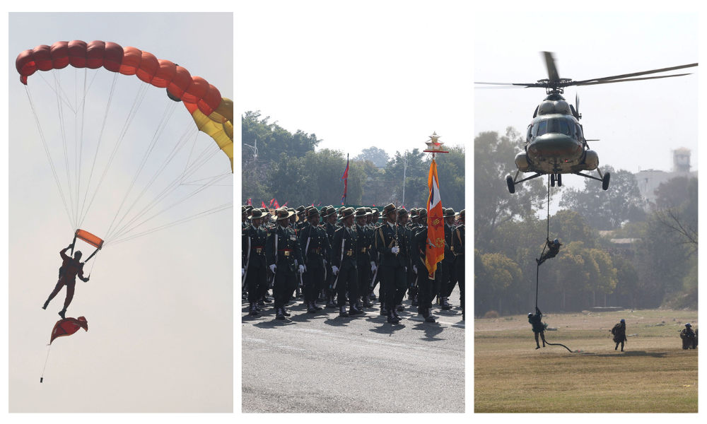 The atmosphere was electrified with adrenaline as soldiers showcased free-fall jumps, cultural performances, and the iconic Khukuri drills, symbolizing the bravery and heritage of the Nepali Army.