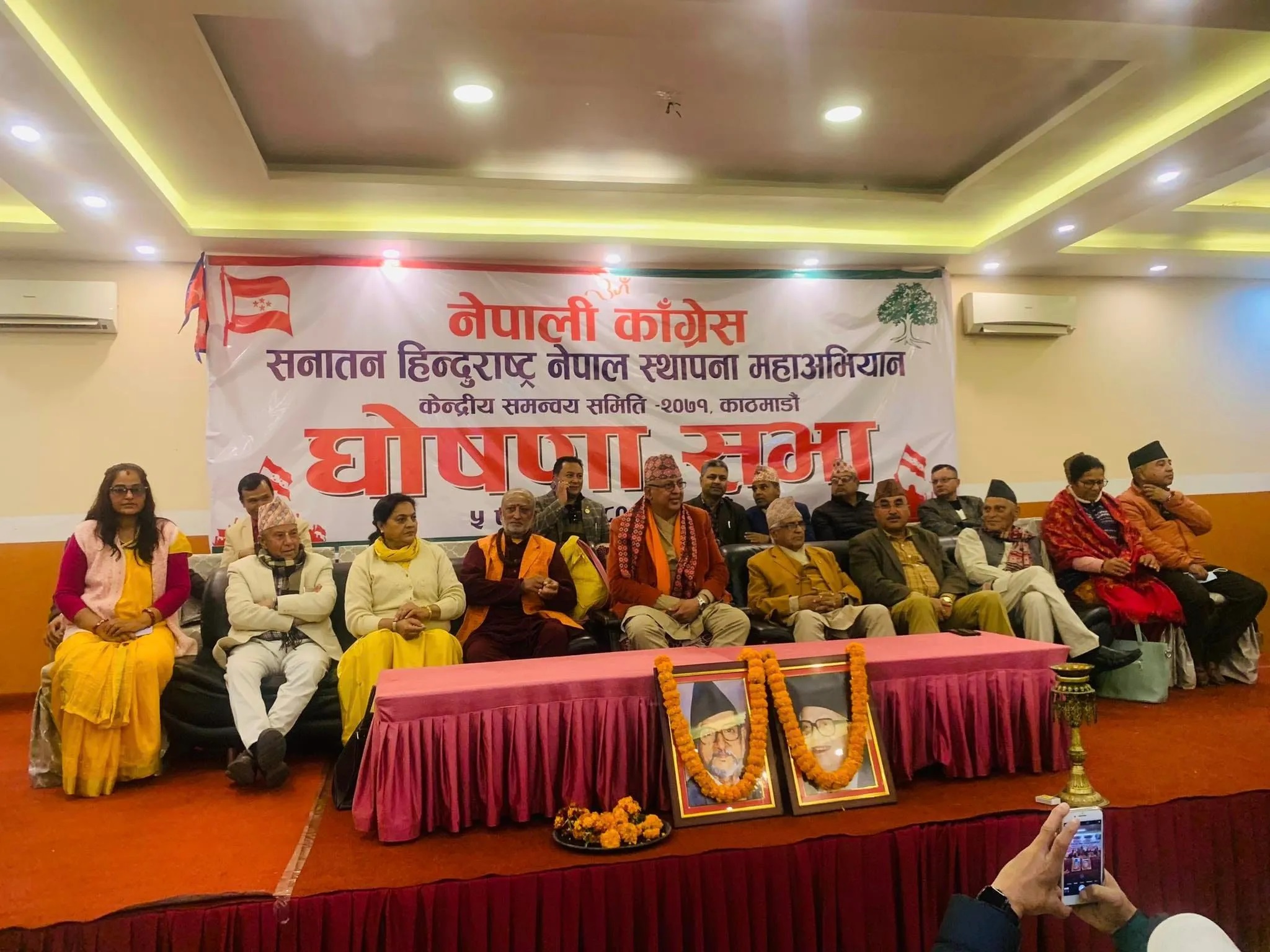 KATHMANDU: Nepali Congress leaders including 22 central committee members, have formally announced a Special Campaign for the establishment of Vedic Sanatan Hindu state Nepal on Saturday.