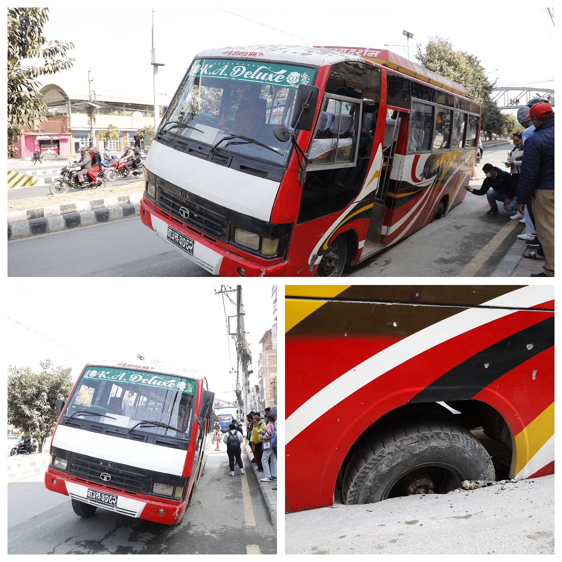 KATHMANDU: Panic ensued among passengers and pedestrians alike as a public bus became stranded on a busy road in New Baneshwor, Kathmandu, on Friday, owing to an unexpected crack in the pavement.