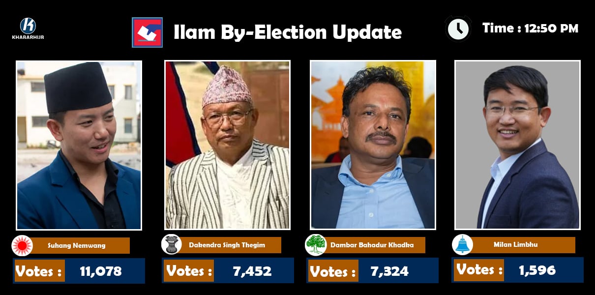KATHMANDU: In the latest update on the vote tally for the Ilam-2 by-election, CPN-UML contender Suhang Nemwang continues to hold a significant lead, securing 11,078 votes.