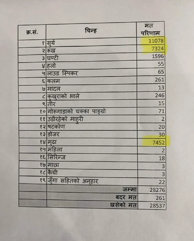 Nepali Congress candidate Dambar Khadka currently occupies the third position, having garnered 7,324 votes, while Milan Limbu of the Rastriya Swatantra Party trails behind in fourth place with 1,596 votes.