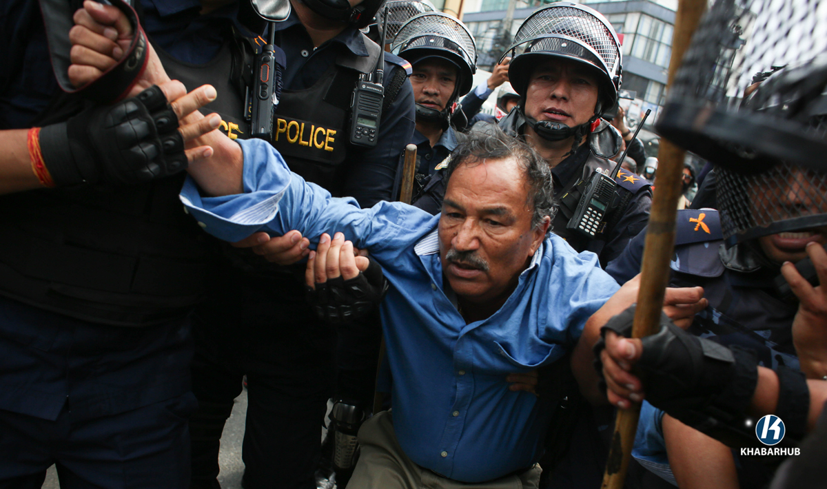 Police intervened as the procession attempted to move forward, arresting Rastriya Prajatantra Party Nepal Chairman and former Home Minister Kamal Thapa along with several others.