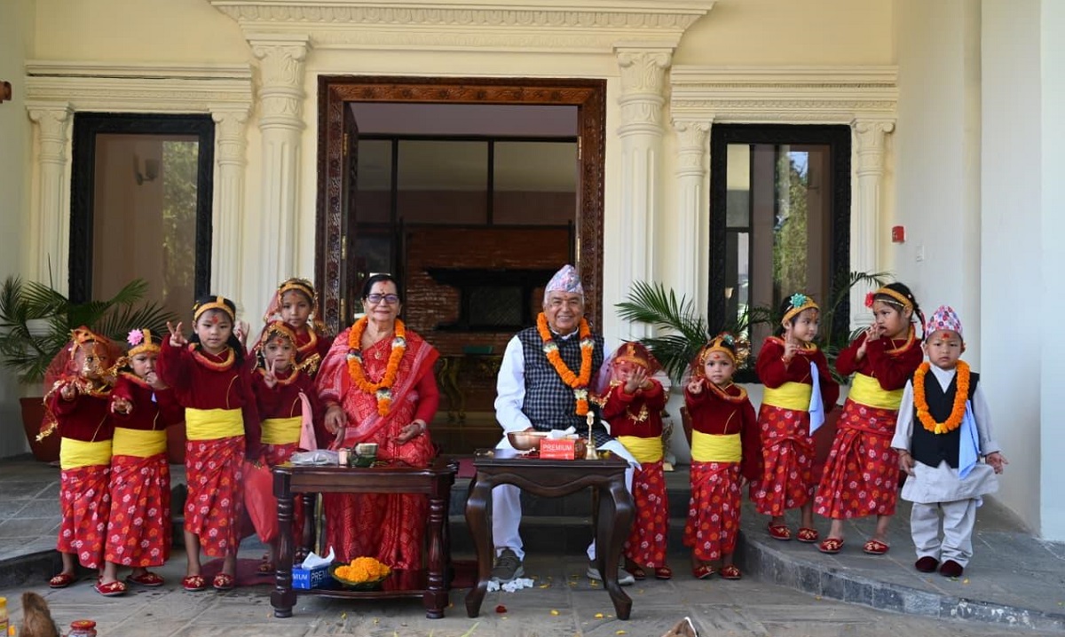 According to the President’s Secretariat, he worshipped nine young girls residing at the Bal Mandir in Naxal. The ritual of worshipping nine girls, regarded as the embodiment of Goddess Navadurga, has been observed annually by the Head of State on Mahanavami.