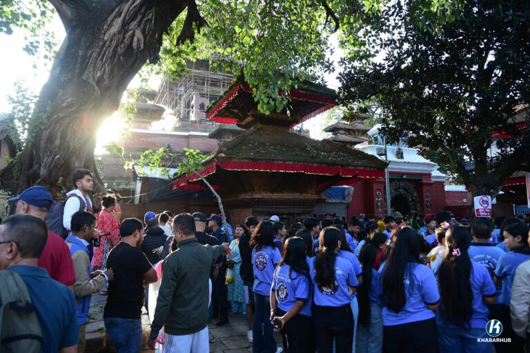 This morning, long queues of devotees stretched from the temple premises through New Road’s Juddha Shalik and adjoining lanes, as worshippers waited patiently for their turn. Each year, hundreds of thousands of devotees throng the site on this day, considered highly auspicious in Hindu tradition.