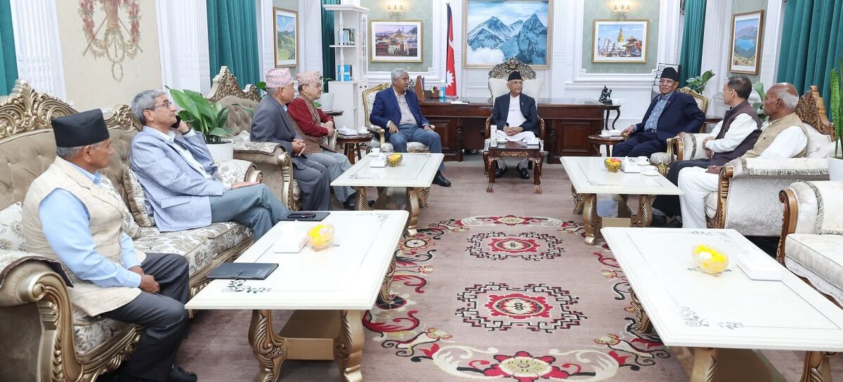 The meeting, convened by Prime Minister Oli with Nepali Congress President Sher Bahadur Deuba and Maoist Centre Chair Pushpa Kamal Dahal ‘Prachanda,’ aimed to resolve the ongoing parliamentary deadlock and move ahead with budget-related discussions. Lekhak had previously attended similar top-level meetings as well.