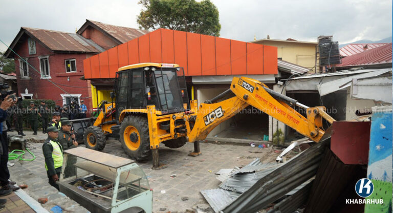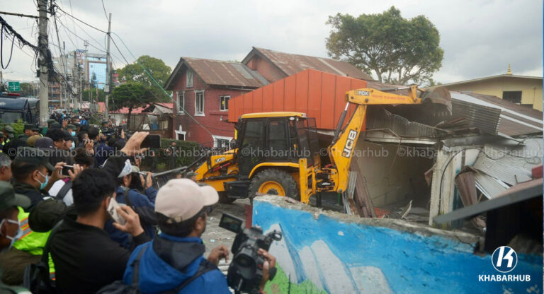 KMC uses bulldozer at Thapathali Traffic Police Office (Pics)