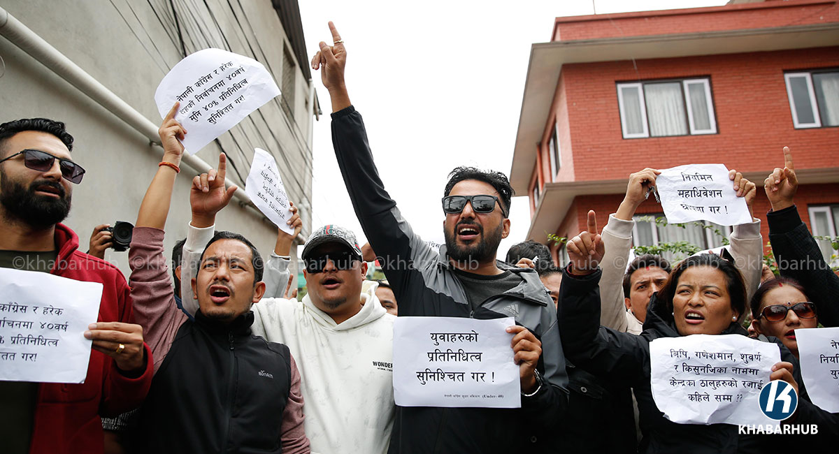 Protesters demanded a regular general convention and proper youth representation. After locking the gate, they sat outside while chanting slogans such as, “If a regular general convention cannot be held, the current central committee should be dissolved! The sentiments of ordinary Nepali Congress members and youth should not be ignored!”