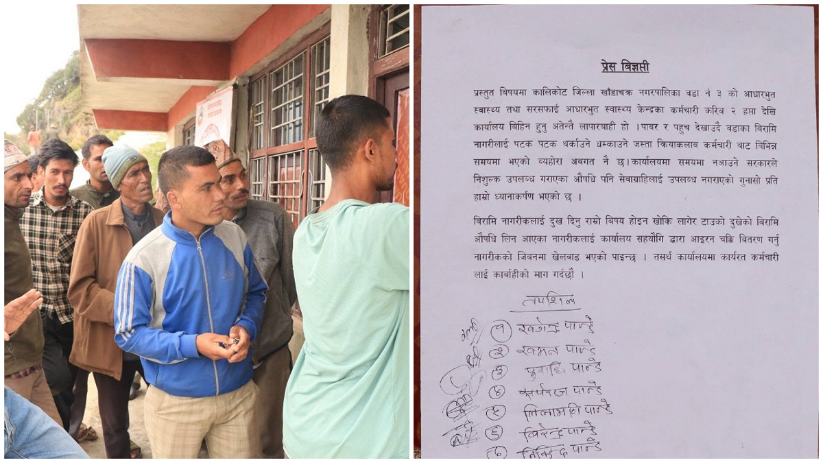 KALIKOT: Residents of Tadi Basic Health Center in Khadachakra Municipality-3, the headquarters of Kalikot district, have locked the facility, which has been without staff for nearly two weeks.