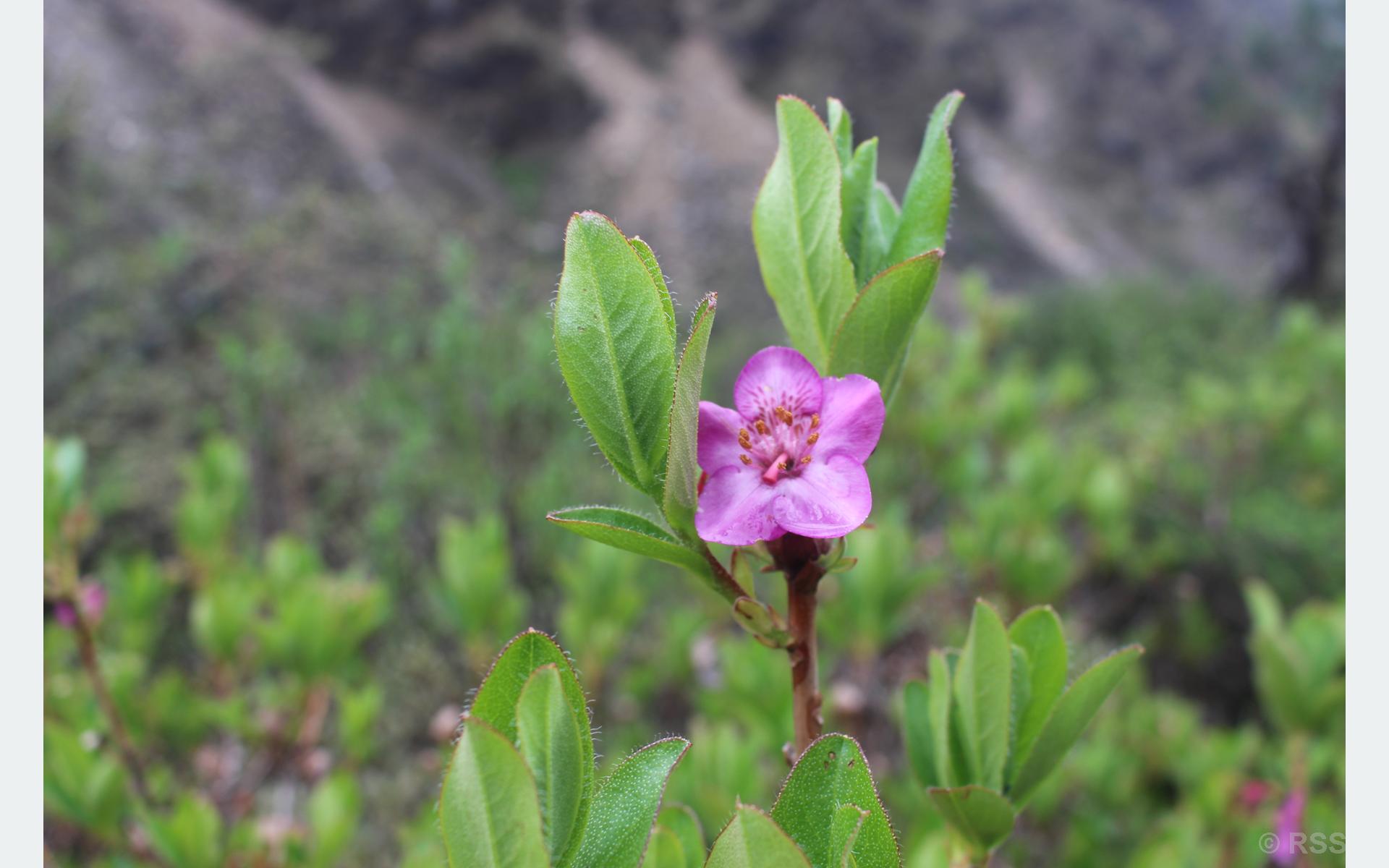 According to botanist Kamal Maden, Pothre Gurans is a small, native species of rhododendron and one of the 33 species found in Nepal. This particular species can grow up to three meters tall.