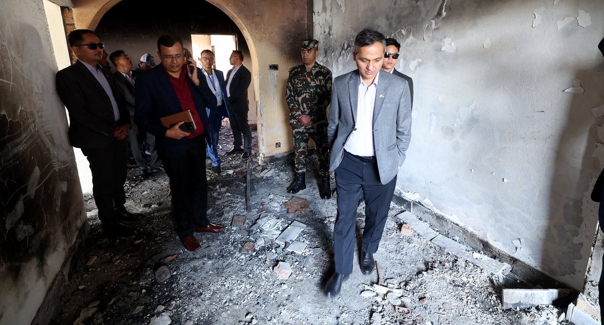 The team also visited Balaju Police Post, which was damaged during the same protest. Reconstruction has begun there with local cooperation, though the police chief highlighted land ownership issues to the Home Minister.