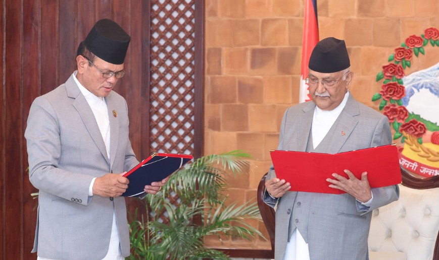 The oath-taking ceremony took place at the Prime Minister’s residence in Baluwatar on Sunday.
