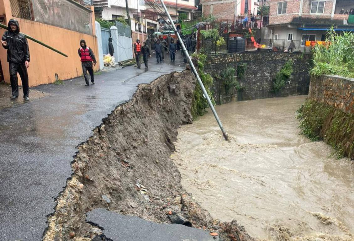 KATHMANDU: Several houses have been placed at risk after a section of road near Kohinur Housing in Kathmandu Metropolitan City-14 caved in due to river cutting.