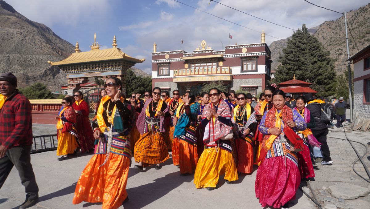 A parikrama (ritual circumambulation) was held in Jomsom, Mustang, on Monday, reflecting the Thachyang culture. During the ceremony, people sang songs in the Tangwe Gurung language, honoring the ancestral deity and marking the freedom from life’s dynamic tasks.