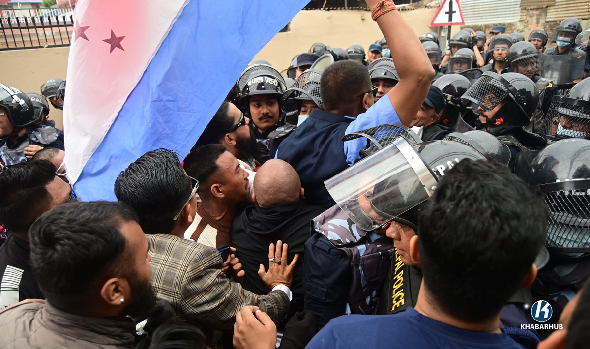 The protest began from Old Baneshwar and culminated at the Nepali Congress central office in Sanepa, where the youths chanted slogans and clashed briefly with police while attempting to enter the premises.