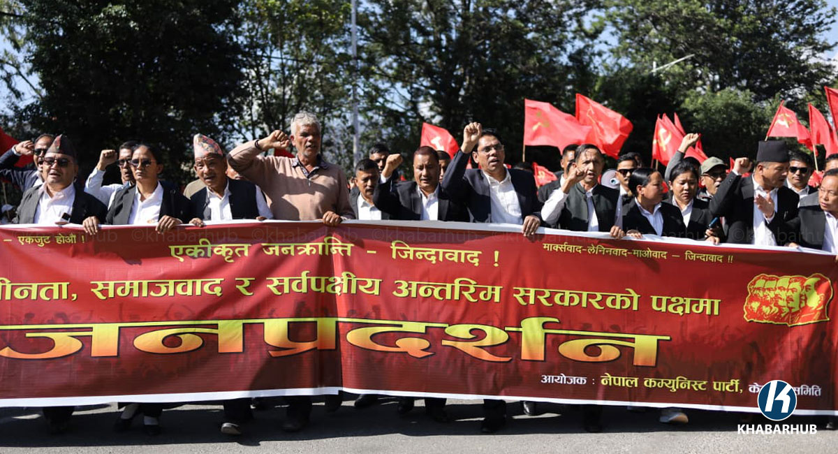 KATHMANDU: The Netra Bikram Chand ‘Biplav’-led Communist Party of Nepal staged a demonstration in Kathmandu on Thursday, demanding the formation of an all-party interim government.