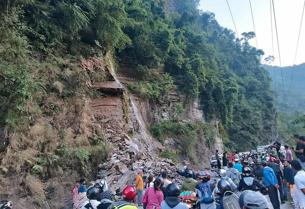 Dry landslide disrupts traffic along Muglin–Narayangadh section